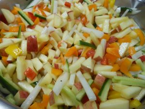 自家製りんご入りピクルスの出来上がり。味が整うまで少し時間がかかります。テイクアウト出来ます(¥680)。